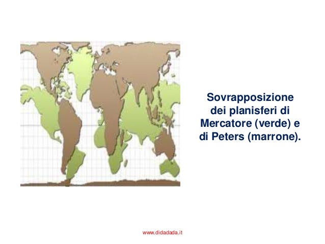 Scienziati storici papi ricercatori navigatori hanno disegnato delle carte ma solo da 400 anni esiste il mestiere di cartografo. Peters mostrò come questa proiezione fosse più corretta rispetto alla diffusa proiezione di Mercatore poichè conservava esattamente i rapporti fra le superfici delle varie parti del mondo. Usando la Mercatore ai tempi doggi si potrebbe La Groenlandia territorio autonomo della quasi leggere in questa distorsione una corona danese quindi politicamente volontà di sottovalutare l Africa europeo che in realtà misura 2176165 Km ² risulta uguale se non più grande del rimpicciolendo il secondo continente più grande del mondo e con esso gli enormi problemi di malattia e povertà che.